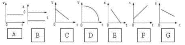*Leida kaks graafikut, mis kirjeldavad ühtlaselt aeglustuvat sirgjoonelist liikumist (s on teepikkus, v - kiirus, a -kiirendus ja t - aeg)